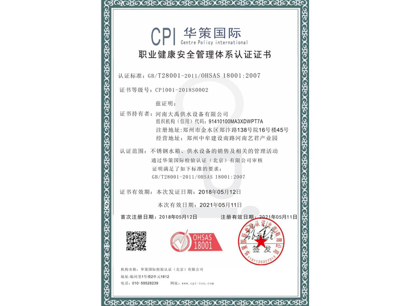 河南大禹供水設(shè)備有限公司是一家不銹鋼水箱及供水設(shè)備的設(shè)計(jì)、制作、安裝和調(diào)試的專(zhuān)業(yè)公司,主要產(chǎn)品有不銹鋼保溫水箱,組合式不銹鋼水箱、生活供水水箱、臥式水箱、消防水箱、圓柱形水箱、無(wú)負(fù)壓變頻供水設(shè)備、消防增壓穩(wěn)壓設(shè)備、恒壓變頻供水設(shè)備等,公司擁有先進(jìn)的生產(chǎn)設(shè)備、雄厚的技術(shù)力量、穩(wěn)定的管理隊(duì)伍和完善的服務(wù)體系,集開(kāi)發(fā)、設(shè)計(jì)、生產(chǎn)、安裝、售后服務(wù)于一體,為客戶(hù)提供全方位的優(yōu)質(zhì)服務(wù)。廣泛用于工礦、單位、住宅···